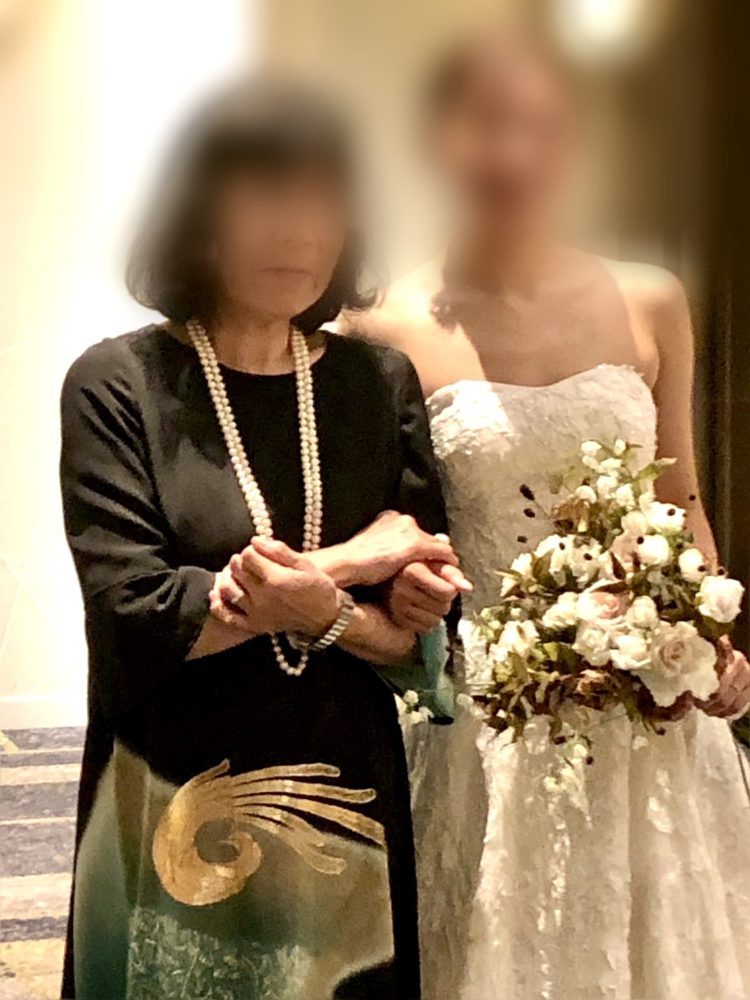 柄の良い所のデザインを生かしていただいて、素晴しいワンピースになりました。挙式でもとても好評でとても華やかで皆さんにほめられました。体にもフィットして着用しやすかったです。帯で作っていただいたバッグもとてもマッチしていて、娘の分も作って頂き娘も大変喜んでいました。ありがとうございます。